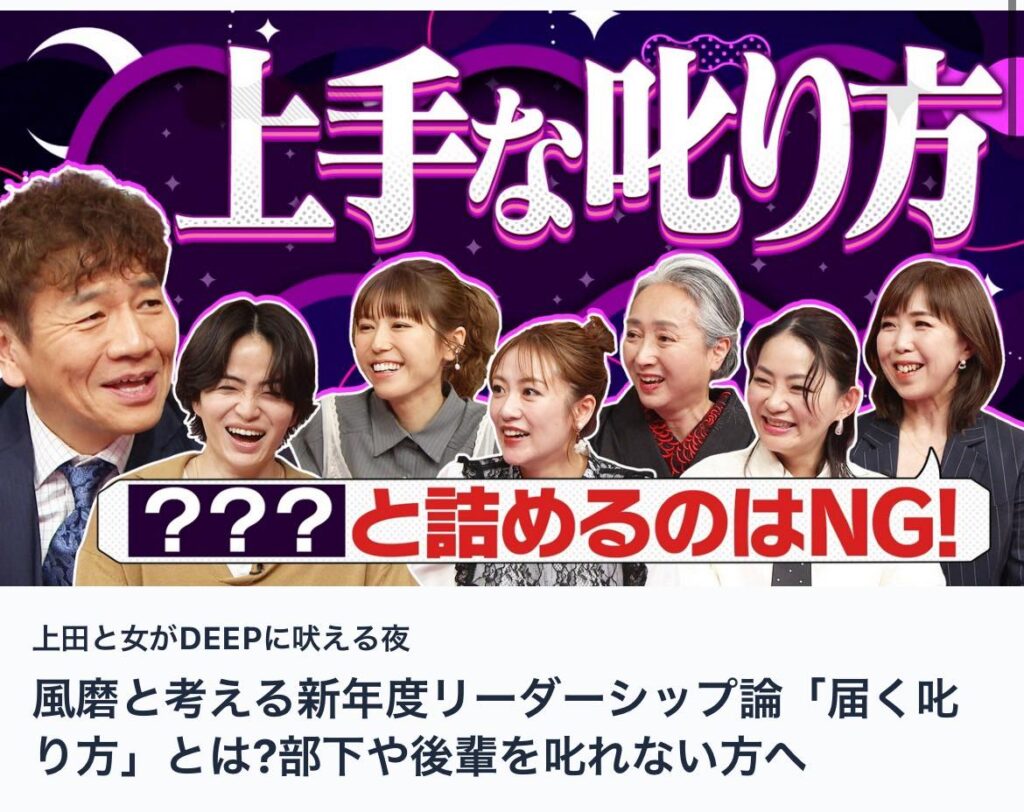 こんにちは!齋藤直美です。いよいよ、今夜放送です! 日本テレビ「上田と女がDEEPに吠える夜」に人材育成の専門家として出演します。ぜひご覧いただけたら嬉しいです(^-^)……で、こ... -